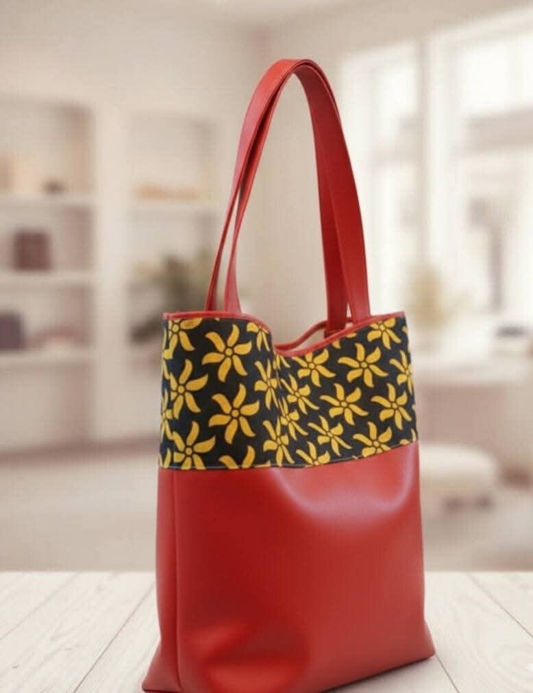 Sac kaba en simili cuir et une touche de tissu ylang ylang